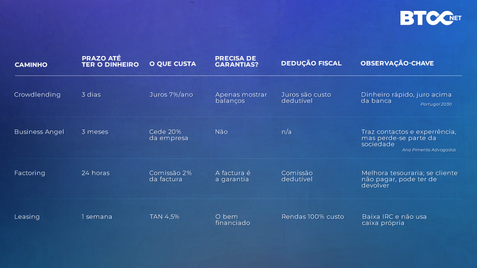 Factoring e P2P libertam dinheiro em menos de uma semana; incentivos Portugal 2030 demoram 3-6 meses da candidatura ao 1.º pagamento Portugal 2030. - Quer ou não quer sócios novos?
